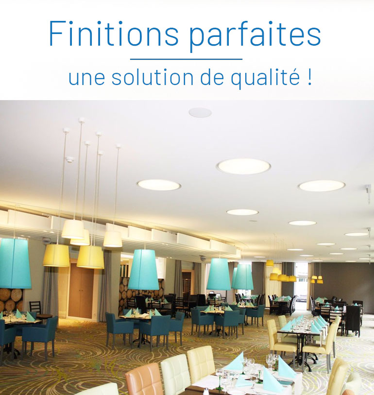 Les climatisations, les poutres, les rosaces et même les luminaires s’intègrent facilement dans l’installation finale tout en garantissant un résultat esthétique.